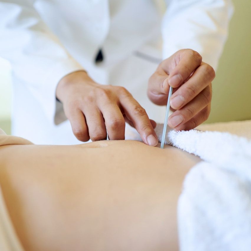 Über die Nadeln geleitete, schwache elektrische Impulse verstärken die Wirkung der Akupunktur.